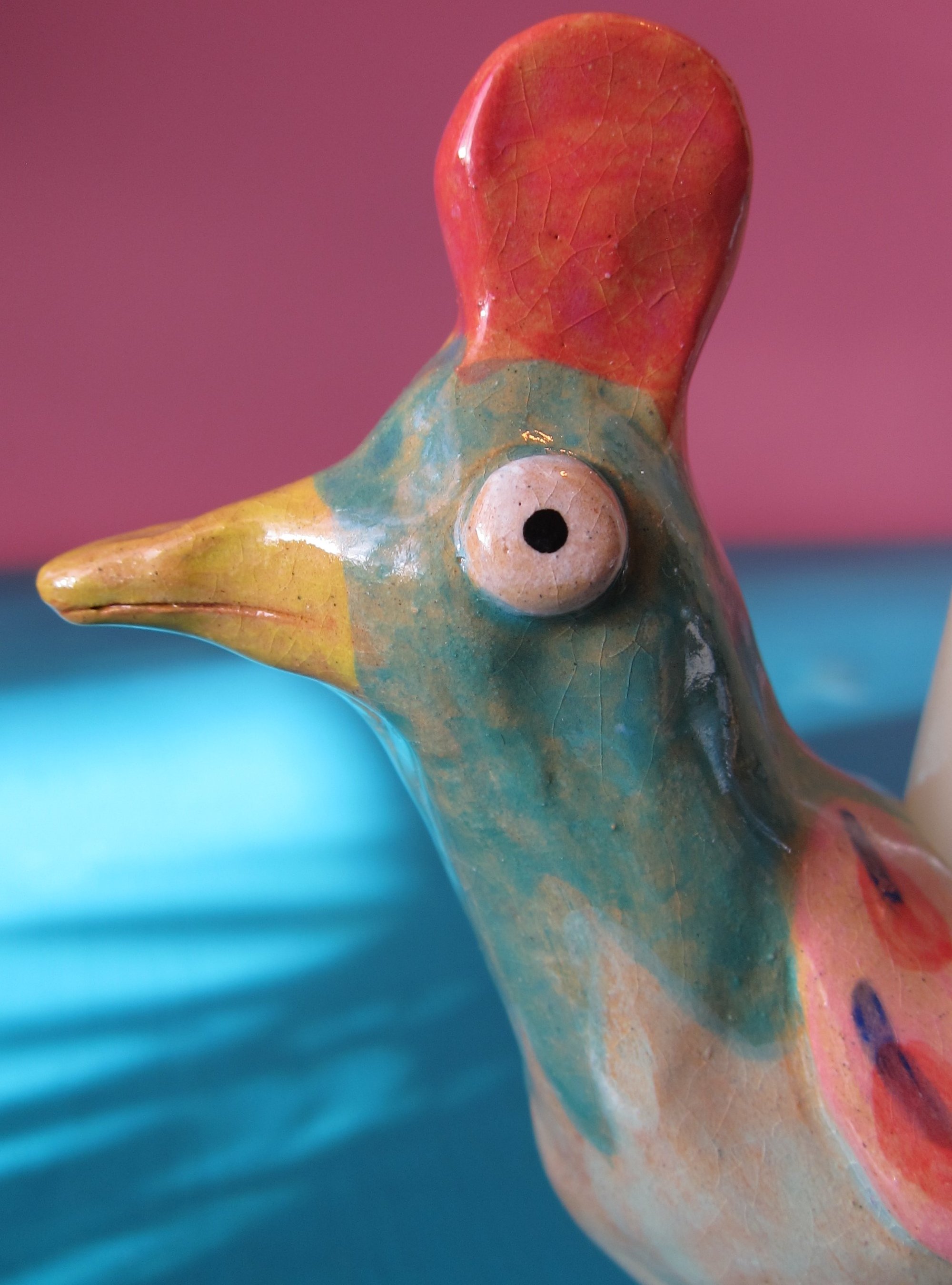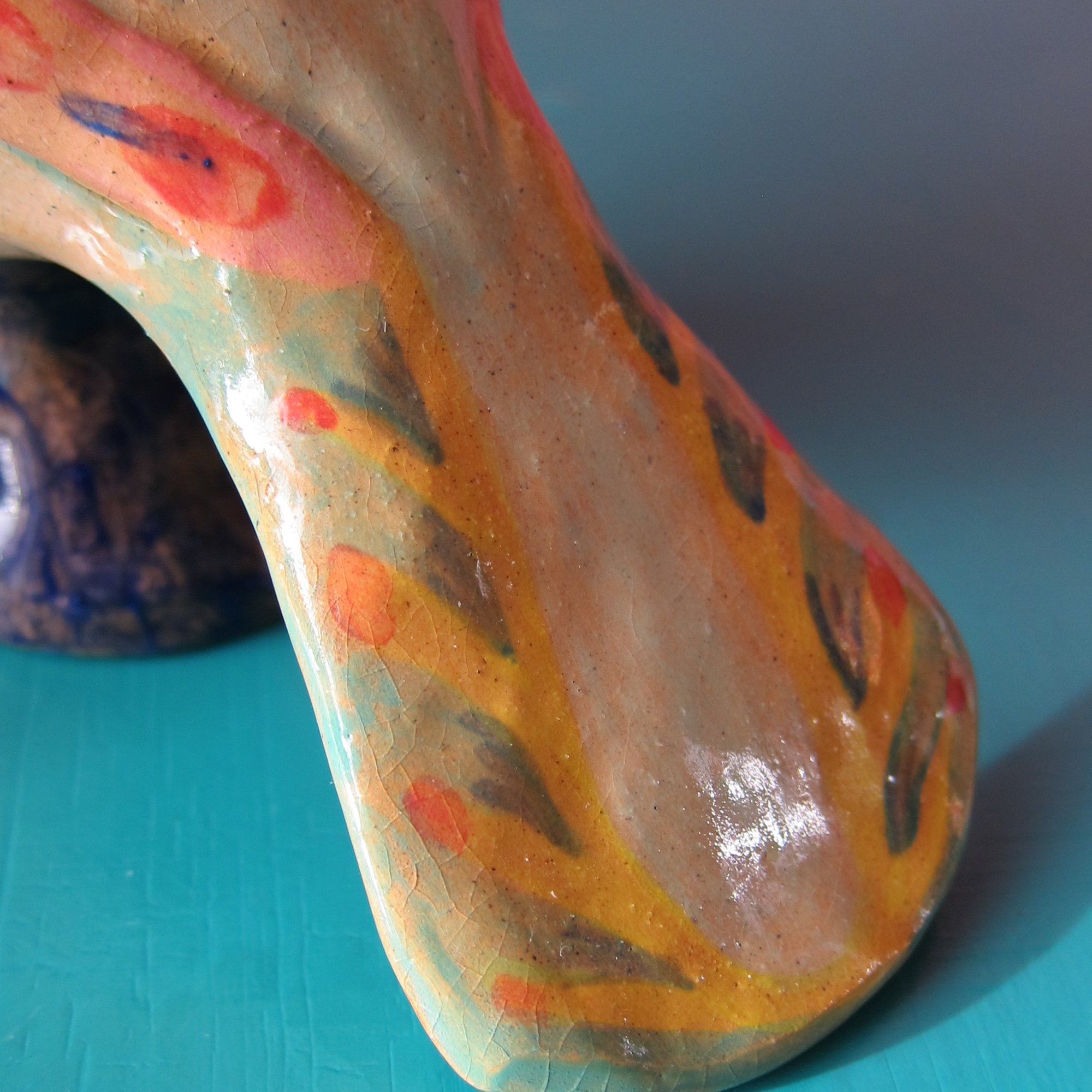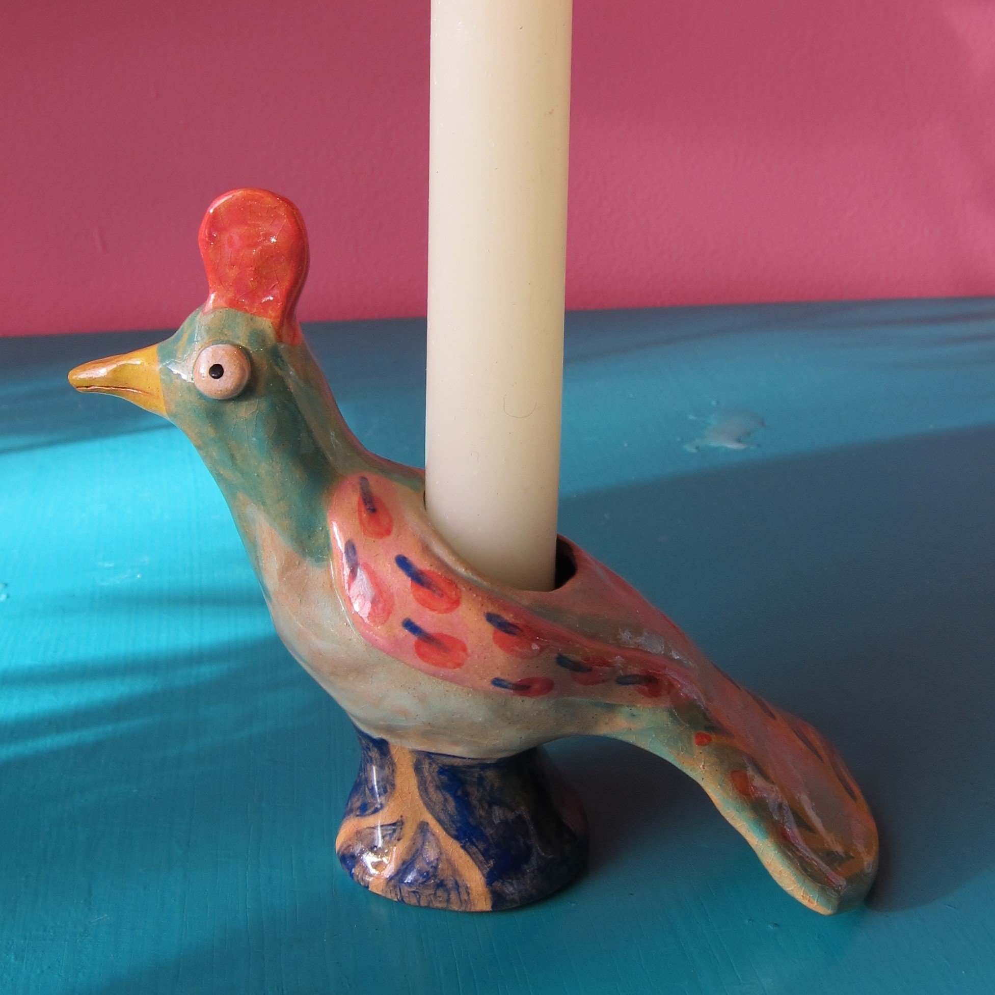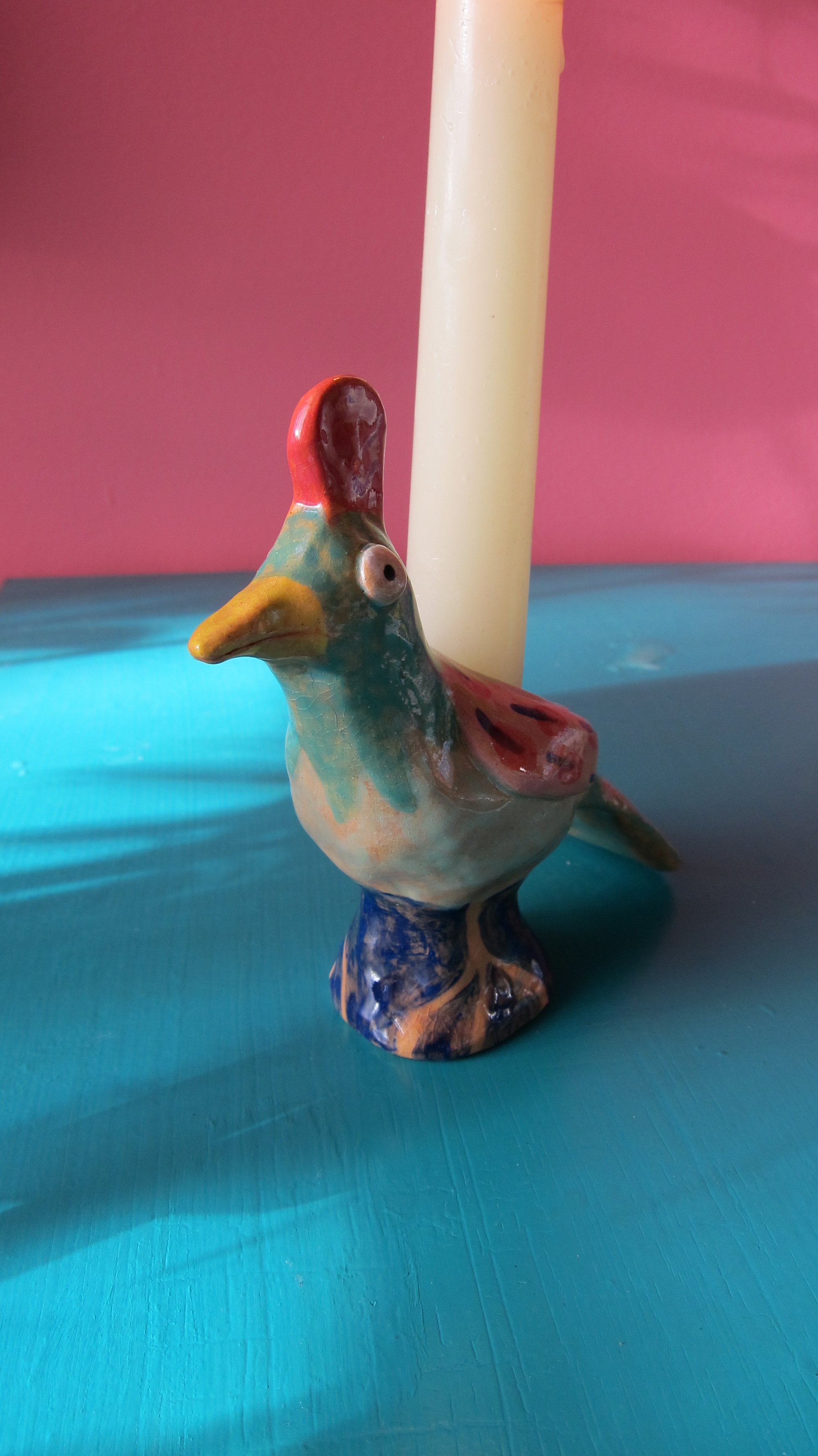 Hand modelled and hand painted one-of-a-kind ceramic candlestick.