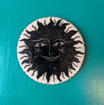Handpainted and one of a kind felt-backed coaster. Diameter 8.5cm
