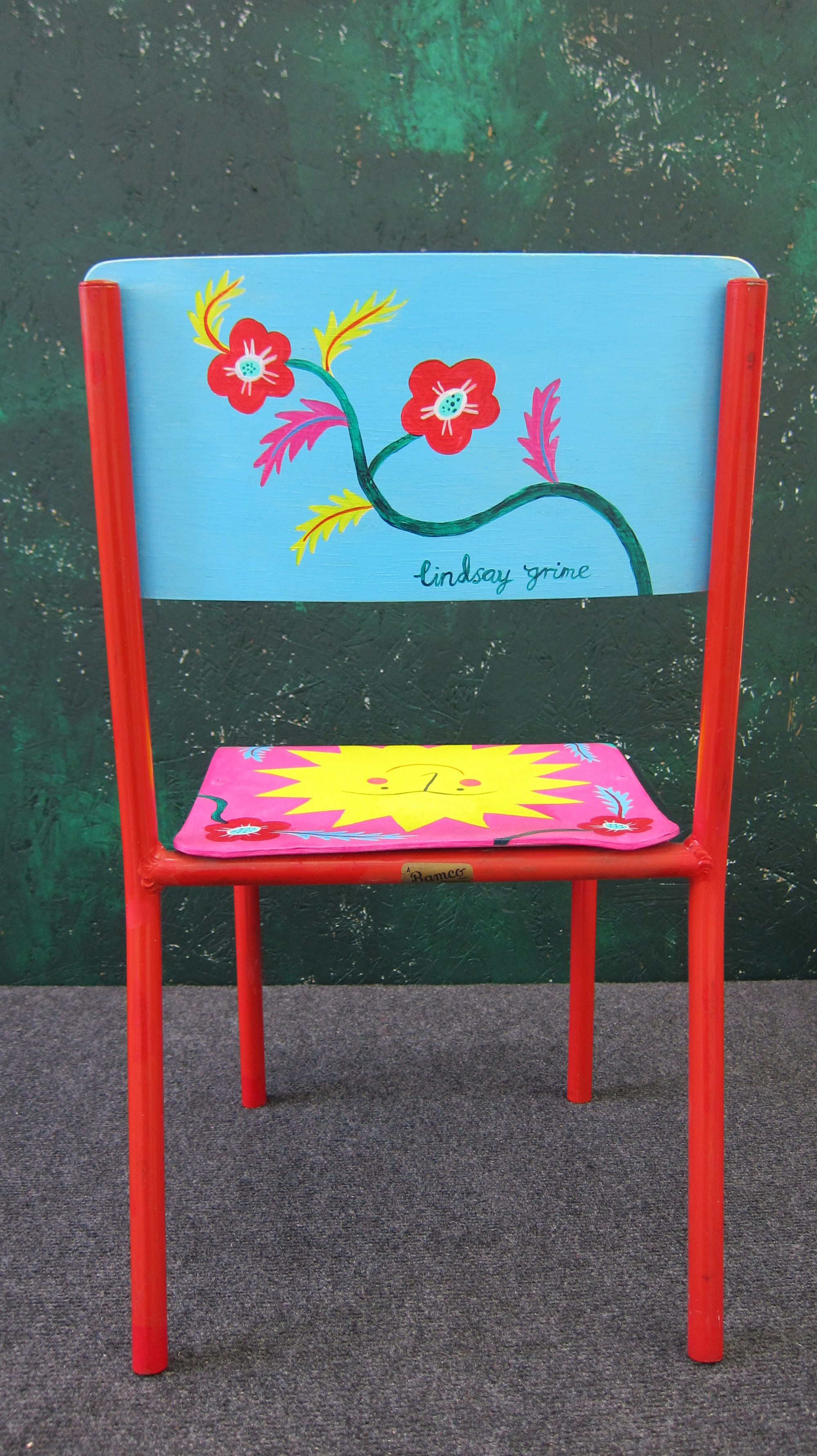Joyful sunface and sweet bird-decorated wee retro school chair. Guaranteed to brighten your space immeasurably!